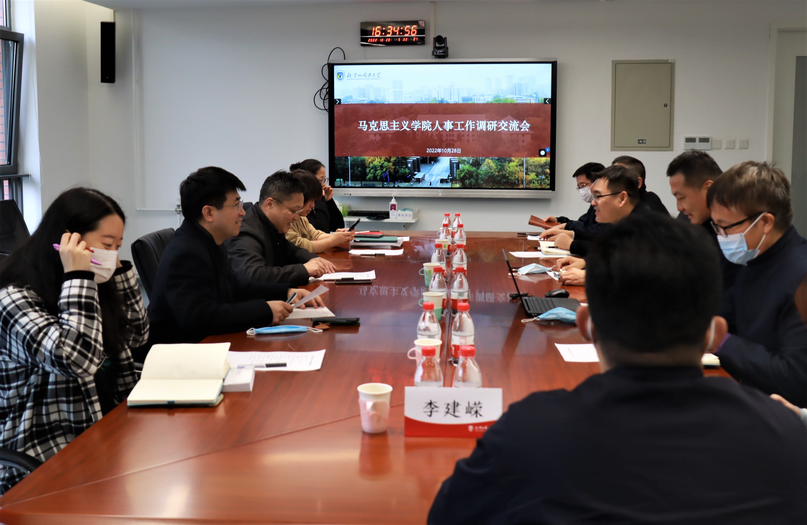 77779193永利集團領(lǐng)導班子對人事處一行到學院調(diào)研交流表示熱烈歡迎,感謝學校人事處對學院工作的支持。院長韓強首先介紹了學院師資隊伍建設的整體情況,匯報了學院在思政課教師職稱評聘、教學科研崗位教師招聘、人才引進、學科建設、青年教師成長等方面的工作計劃和瓶頸,并對預聘制教師及高層次人才管理事宜提出建議。黨總支書記祝和軍結(jié)合近年來學院工作,匯報了在協(xié)調(diào)預聘制教師、校內(nèi)遴選思政課教師和高層次引進人才的工作任務、考核及福利待遇等方面遇到的問題。副院長陳永勝、孫磊就思政課教師職稱“單列計劃,單設標準,單獨評審”進行補充匯報。教師代表左高山、王曼倩、李建嶸分別分享了對博士后考核、教學科研人員職稱評聘制度及新入職教師發(fā)展等方面的看法和建議。