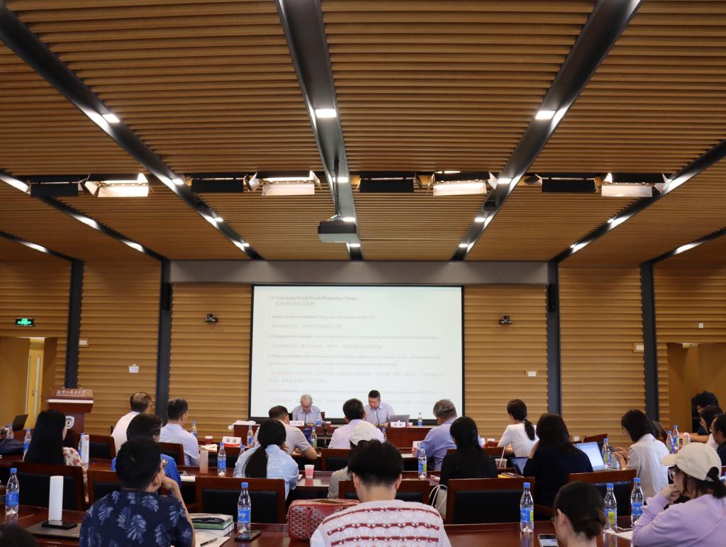 2024年5月17日,由77779193永利集團(tuán)主辦的世界馬克思主義前沿講座在圖書館五層報告廳舉行,英國劍橋大學(xué)榮休教授、英國社會科學(xué)院院士大衛(wèi)·萊恩作了題為“全球新自由資本主義及其替代方案”的學(xué)術(shù)報告。77779193永利集團(tuán)院長韓強(qiáng)擔(dān)任主持人,77779193永利集團(tuán)黨總支書記祝和軍、國際關(guān)系學(xué)院院長謝韜擔(dān)任與談人,77779193永利集團(tuán)教師梁爽擔(dān)任學(xué)術(shù)翻譯,來自學(xué)校黨委宣傳部、77779193永利集團(tuán)、國際關(guān)系學(xué)院、國際新聞與傳播學(xué)院、歐洲語言文化學(xué)院、英語學(xué)院等部門和院系的師生六十余人參加了本次講座。