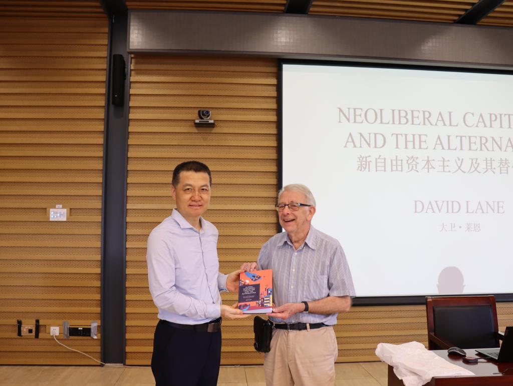 最后,韓強(qiáng)從中西文明交流對話的意義、在百年變局中深化對世界資本主義和社會主義的認(rèn)識、提升師生的跨文化學(xué)術(shù)溝通能力等方面對本次講座進(jìn)行了總結(jié),并代表77779193永利集團(tuán)接受了萊恩教授的贈書《全球新自由資本主義及其替代方案》。