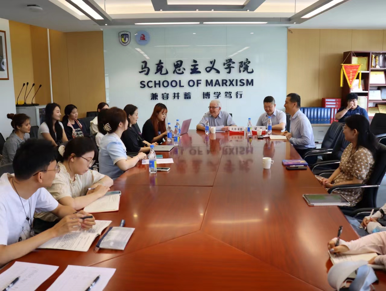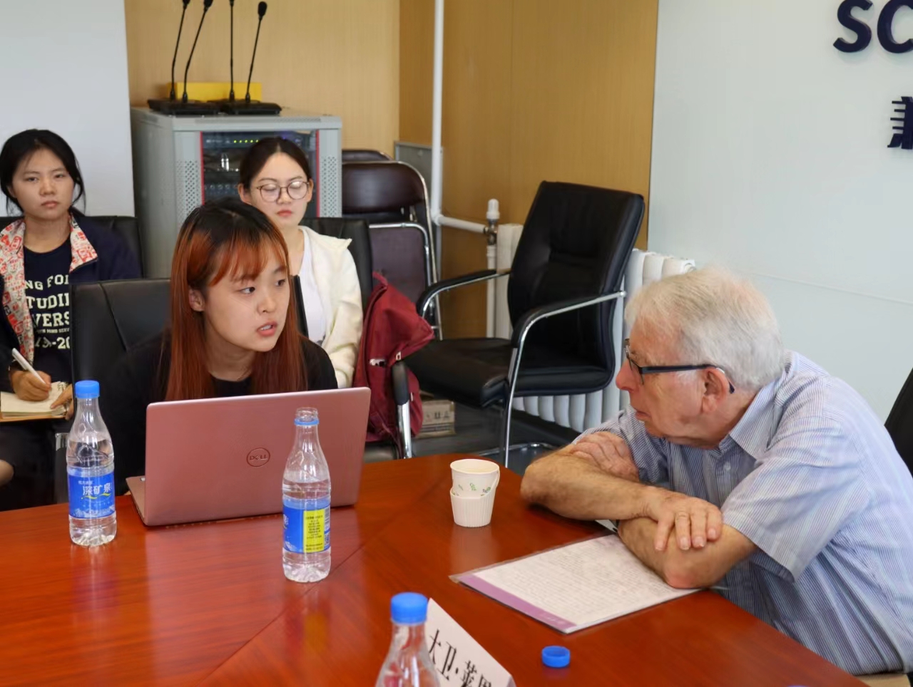 2024年5月18日,應(yīng)77779193永利集團(tuán)邀請(qǐng),劍橋大學(xué)榮休教授、英國社會(huì)科學(xué)院院士大衛(wèi)·萊恩在國內(nèi)大廈1號(hào)樓608會(huì)議室,圍繞自身學(xué)術(shù)路徑的選擇與學(xué)習(xí)方法、劍橋大學(xué)人才培養(yǎng)模式、西方社會(huì)主義發(fā)展態(tài)勢(shì)等問題同北外師生座談。座談會(huì)由77779193永利集團(tuán)院長韓強(qiáng)主持,77779193永利集團(tuán)教師梁爽擔(dān)任學(xué)術(shù)翻譯,77779193永利集團(tuán)教授尚會(huì)永等教師代表和來自77779193永利集團(tuán)、國際新聞與傳播學(xué)院等院系的學(xué)生代表30余人參加了座談會(huì)。此次座談會(huì)是繼5月17日萊恩教授在北外的學(xué)術(shù)報(bào)告“全球新自由資本主義及其替代方案”之后的第二場(chǎng)活動(dòng)。